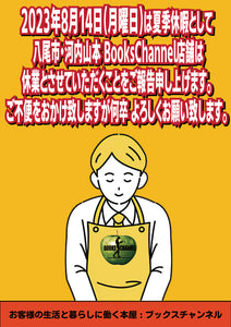 誠に恐れ入りますが、2023年8月14日(月曜日)は夏季休暇として、八尾市・河内山本 BooksChannel店舗は休業とさせていただくことをご報告いたします。